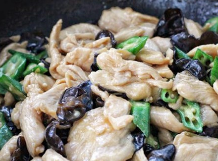 爽滑可口的秋葵木耳鸡肉片,滑嫩到不敢相信,不吃就亏了