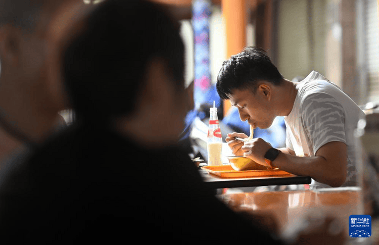 8月14日,市民在广西南宁市水街吃生榨米粉。新华社记者陆波岸 摄