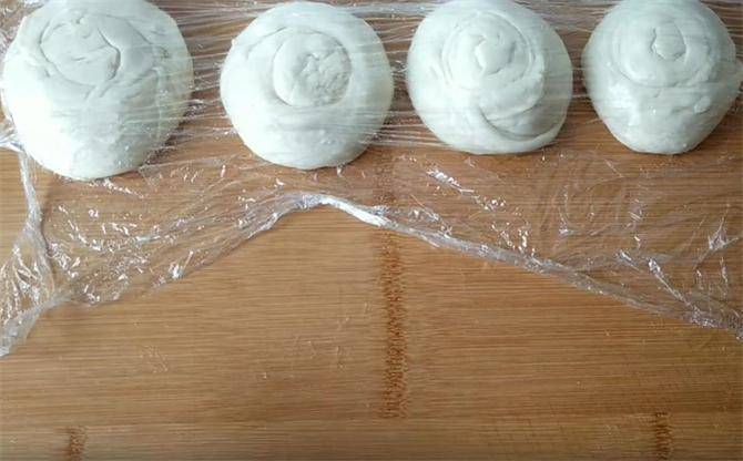 6.做好的饼坯再醒5到10分钟,使面筋松弛,更容易擀开,饼的口感也更加柔软,用手按压不回弹即可。