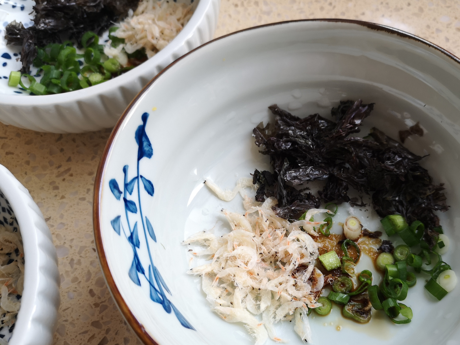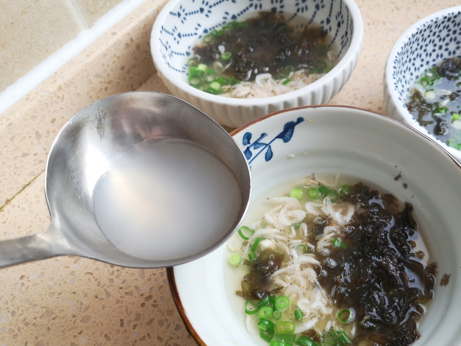 接下来讲的是汤头,像我们普通家庭一般不可能随时配备有高汤,但是有这两样食材搭配在一起,味道异常鲜美,一点都不输高汤,它就是紫菜和虾皮的组合。再加一把葱花,来一点点盐和少量的生抽,开水一冲,就成了一碗简单又鲜美的高汤。可别小瞧了这两样食材,它们是补钙的黄金搭档,每天吃一点可以满足一天的钙需求。是真正的好吃有营养的平价补钙佳品。