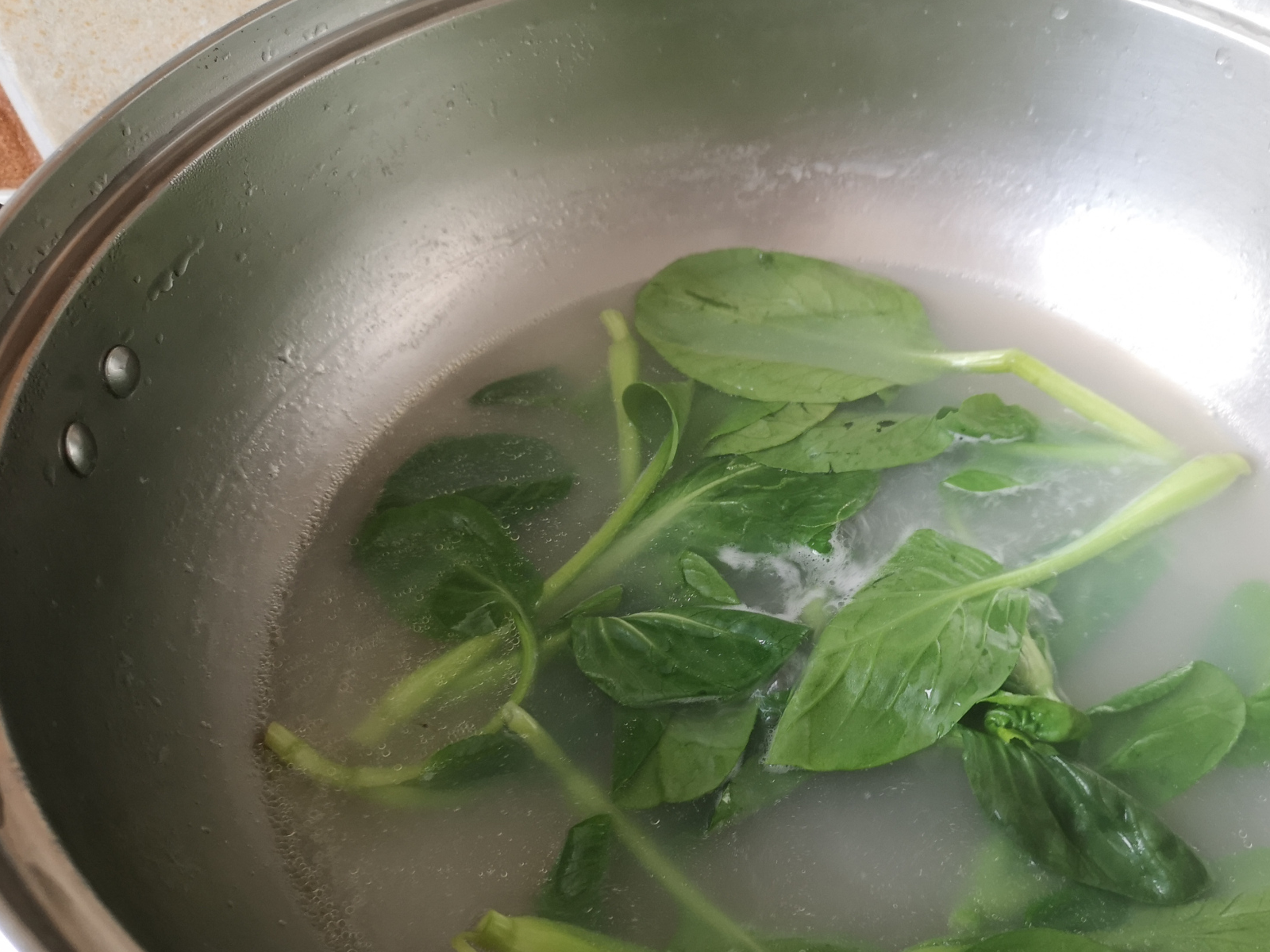 8、煮馄饨的水再烫一些青菜。