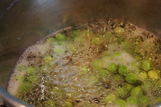 2、锅中加入适量的水,下入豌豆粒煮熟,也可以直接放入电饭煲煮熟。