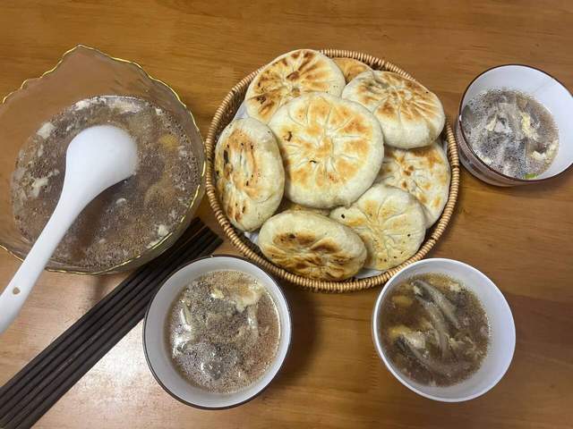 喧软好吃的茄子先肉饼就做好了,皮薄馅大,鲜香美味,再搭配平菇鸡蛋汤,大儿子一口气吃4个,还说没吃饱,好吃又解馋,太香了!