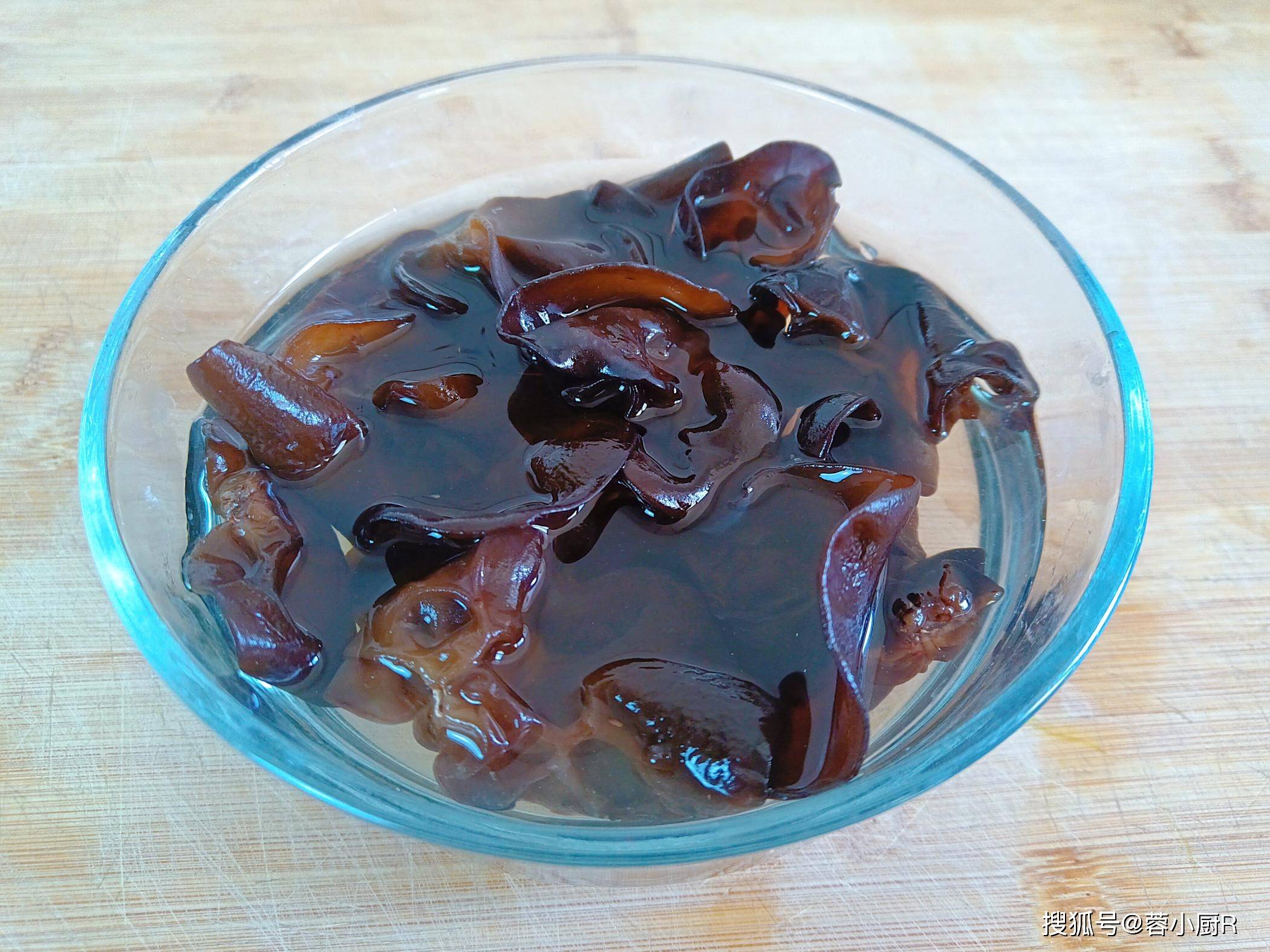 3、黑木耳1把,加一勺盐和一勺面粉,然后加温水泡发10分钟。