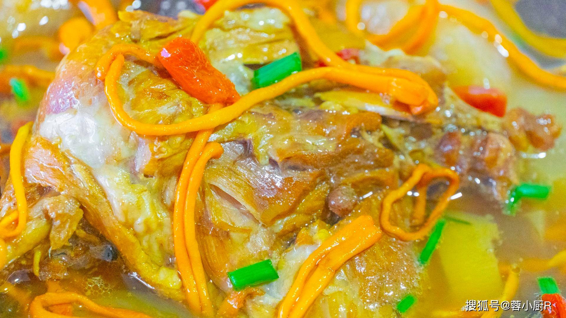 5、20分钟后倒入萝卜、虫草花、香菇、红枣,盖上小火继续慢炖30分钟。