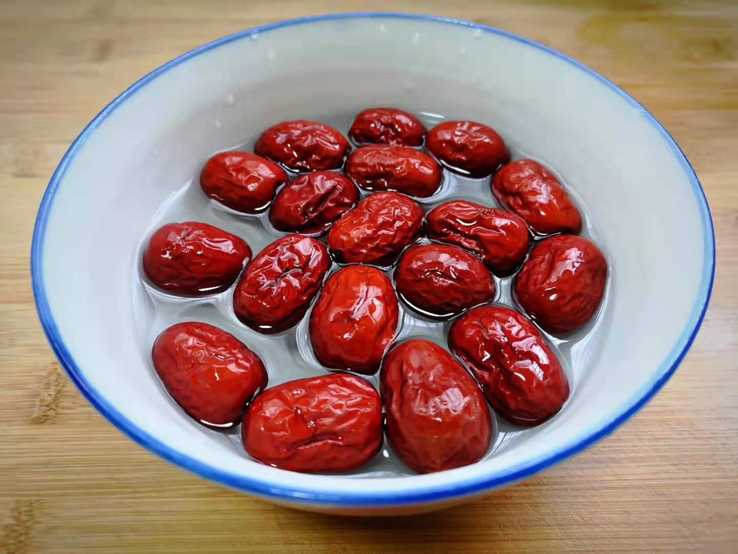 2、干百合先放入水里浸泡10分钟泡软,再冲洗干净,适量红枣放入温水中浸泡片刻,将其搓洗干净,去掉红枣核。