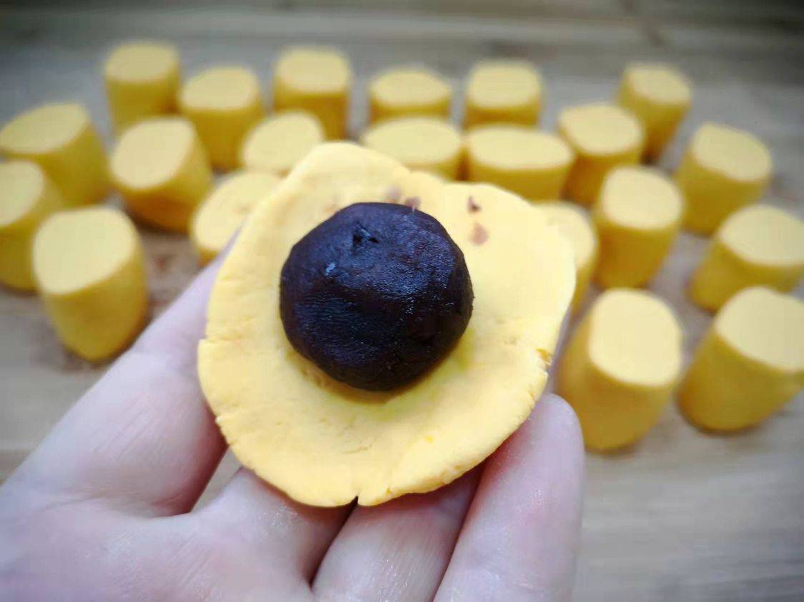 食材:南瓜、豆沙馅、糯米粉、白糖、