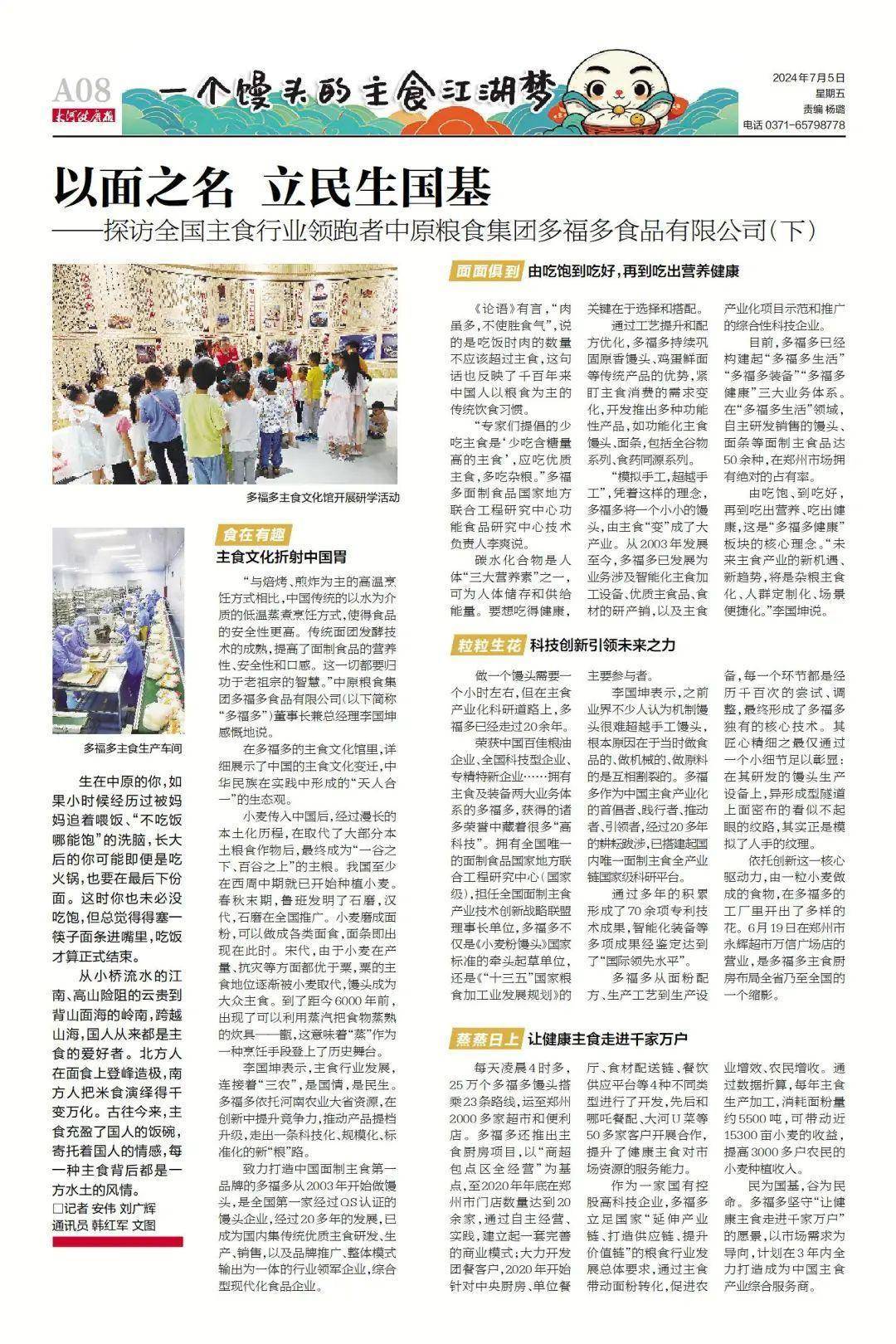 李国坤表示,主食行业发展,连接着“三农”,是国情,是民生。多福多依托河南农业大省资源,在创新中提升竞争力,推动产品提档升级,走出一条科技化、规模化、标准化的新“粮”路。