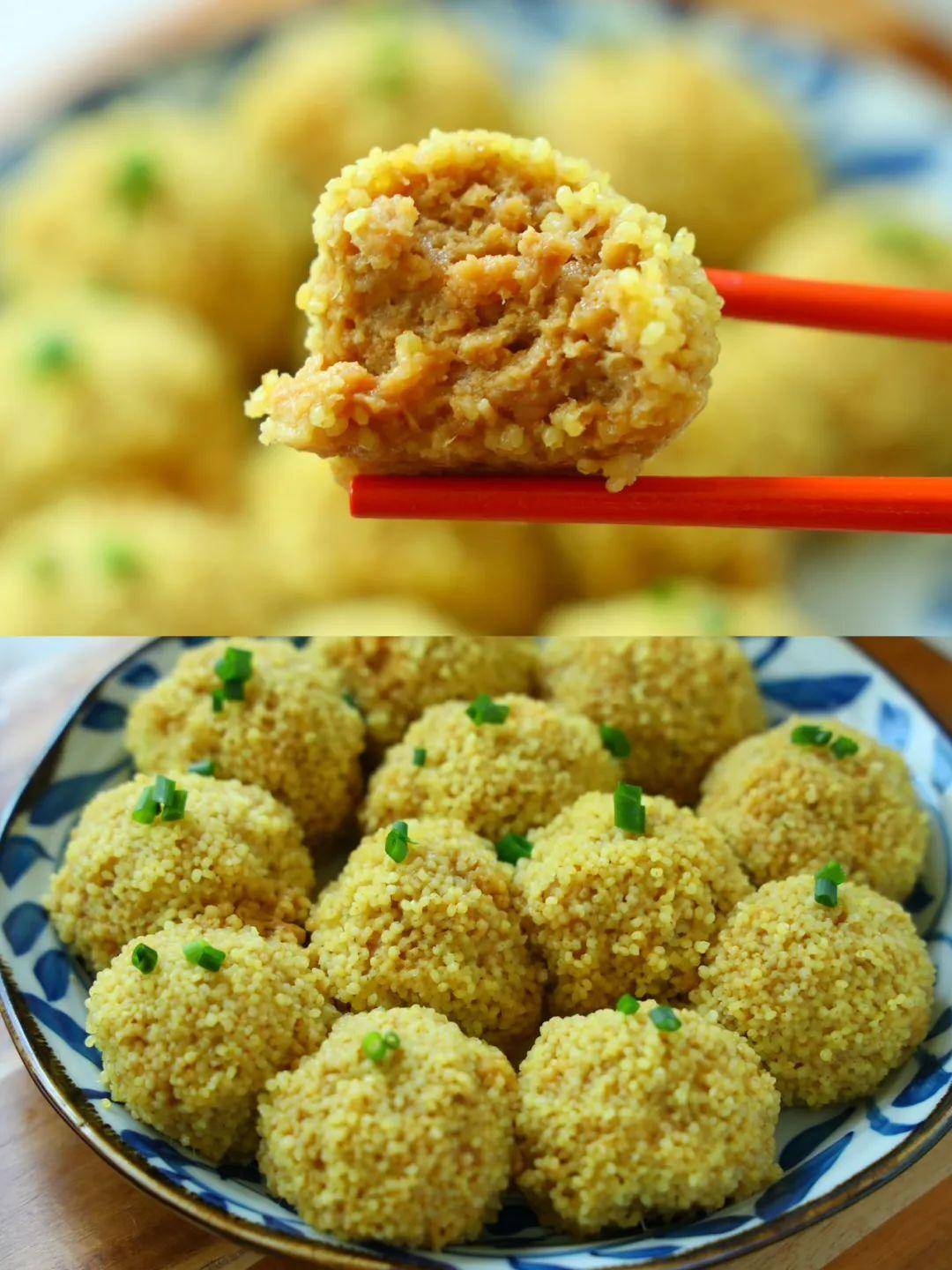 金黄的小米粒粒饱满,包裹着紧实多汁的肉丸,上锅一蒸,香气四溢。小米的质朴与肉香的醇厚相互渗透,不仅丰富了口感层次,更在滋养脾胃的同时,带来满满的幸福感。