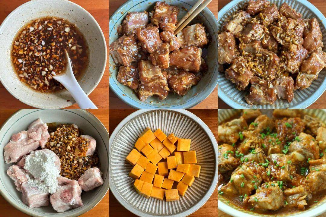 制作配料:排骨3斤 南瓜1块 淀粉1勺