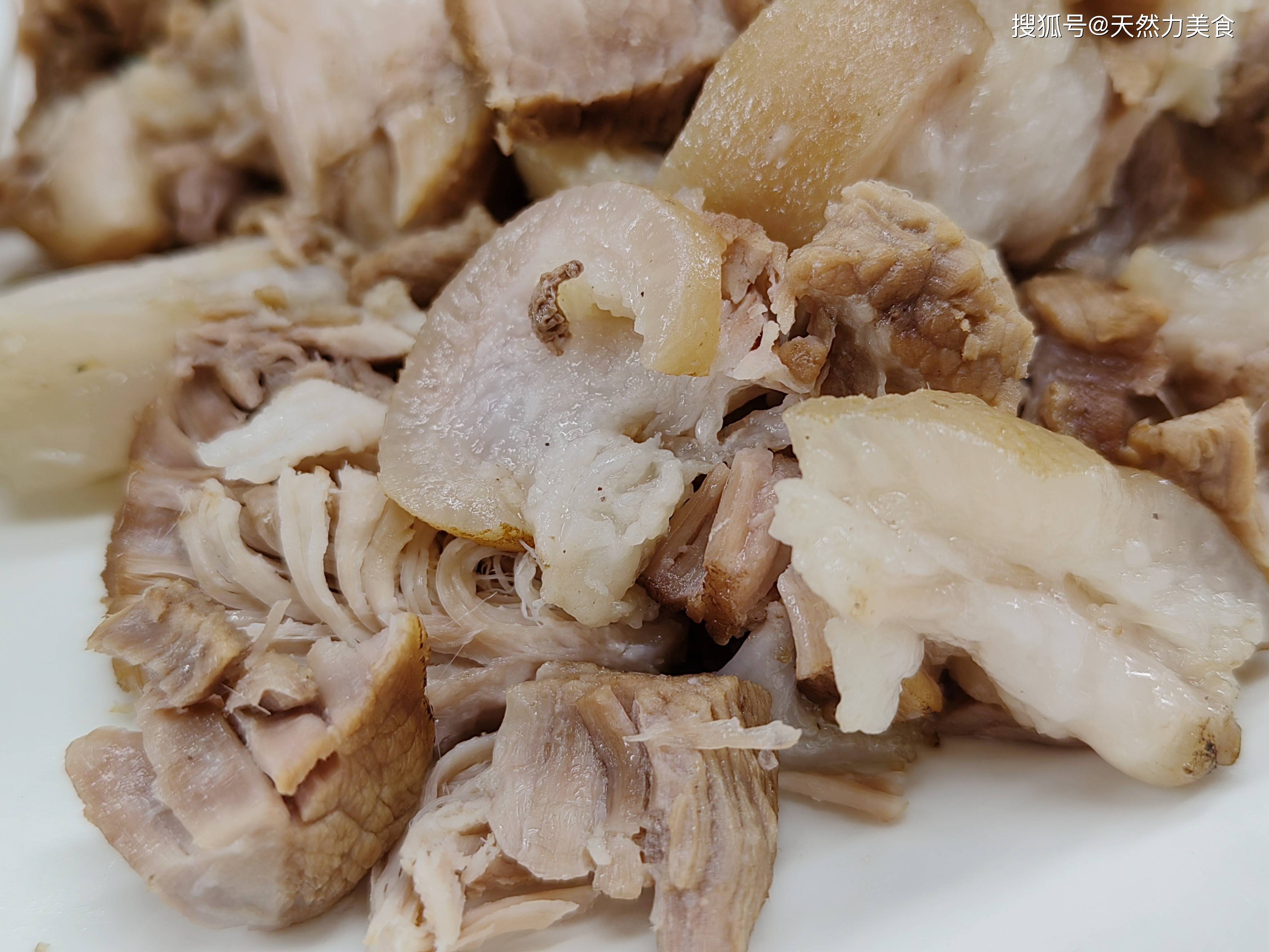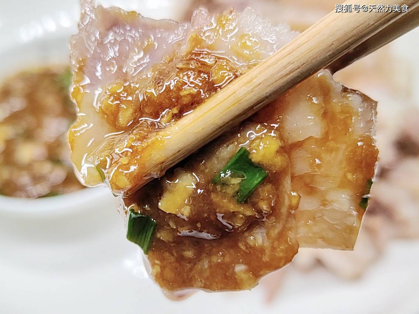 夹上一块,蘸着蒜汁来吃,蒜香味浓,肉香厚重,不柴,不油腻,吃着过瘾,你一块,我一块,风卷残云,一个肘子都不够吃啊!这样好吃的美味很合适用来贴秋膘哦!