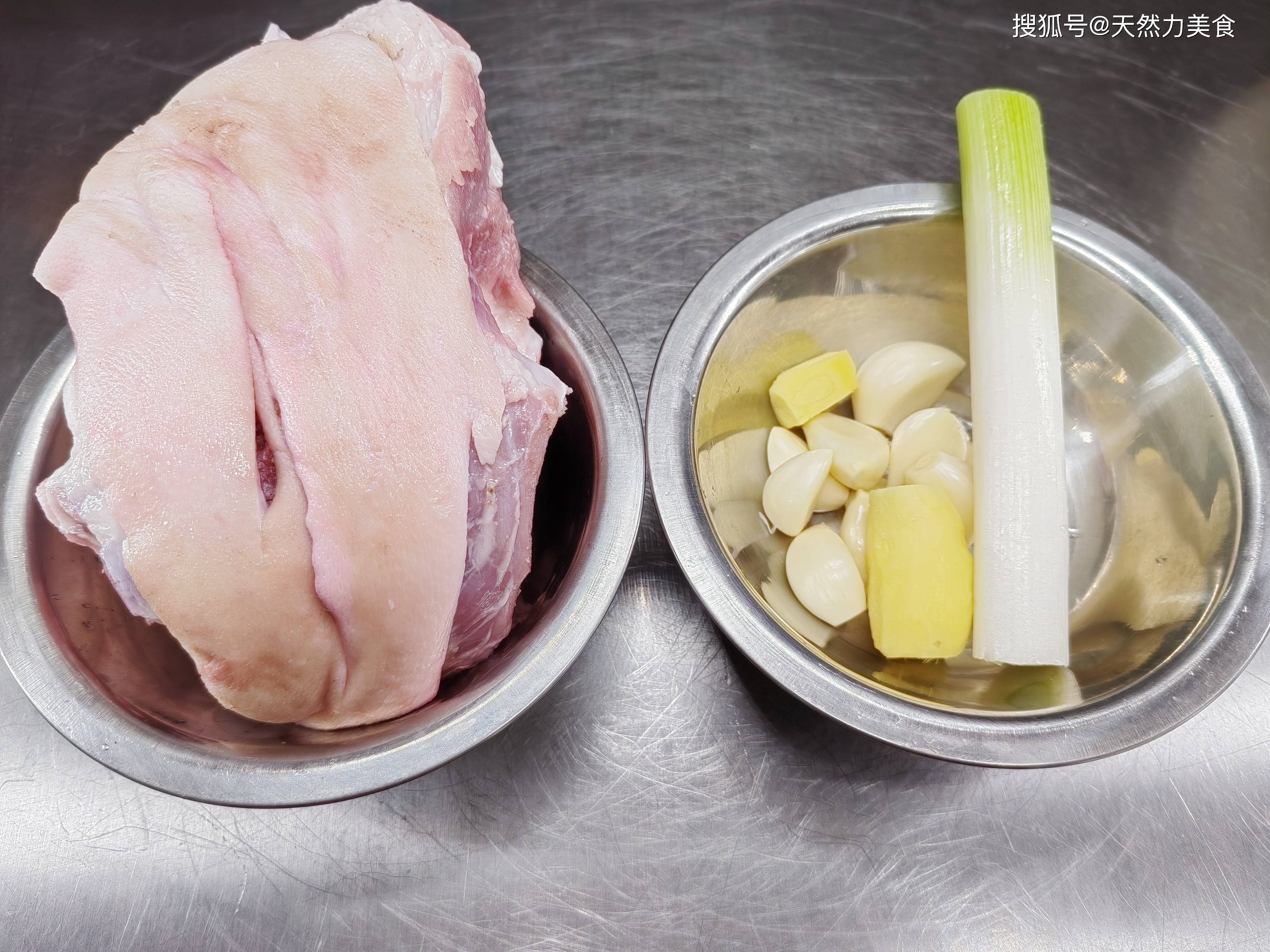 【配料】: 大葱50克(煮肘子用)、生姜15克(煮肘子用)八角2个(煮肘子用)、花椒5克(煮肘子用)、香叶3片(煮肘子用)、白芷1片(煮肘子用)、食用盐12克(煮肘子用)、花雕酒50克(煮肘子用)、蒜子20克(调蒜汁用)、生姜3克(调蒜汁用)、小葱2根(调蒜汁用)。