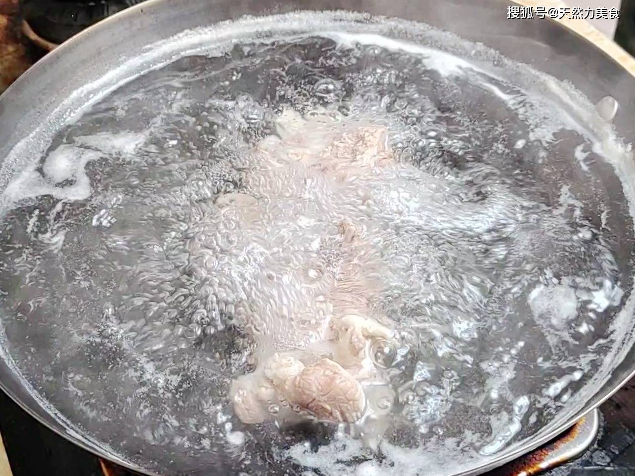 1、起锅加水,肘子要冷水下锅,另外还要加30克料酒去腥增香,接着开大火开始焯水,水开后再煮3分钟就可以捞出。焯水的目的就是要拔除肘子中的血水,血水少了,腥味自然就轻了。