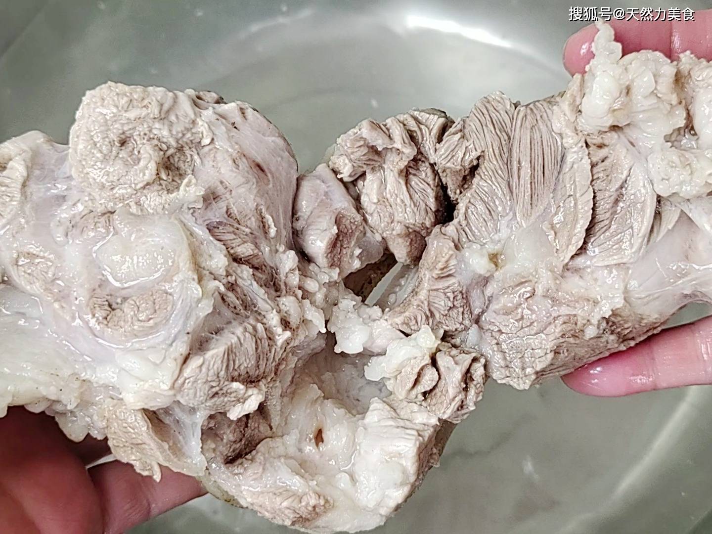 2、肘子捞出后还要用热水清洗一下,要把黏附在表面的浮沫清洗干净,因为这些浮沫都是血水变成的,这不仅脏,而且还腥,洗干净看起来也会更清爽。洗好后控水备用。