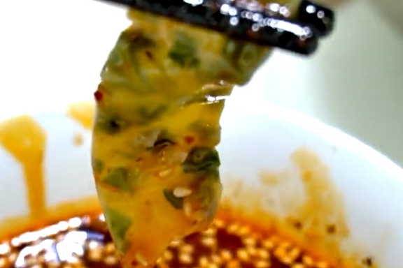 【原材料】:韭菜、面粉、食盐、辣椒油、香醋、蒜泥、凉白开。