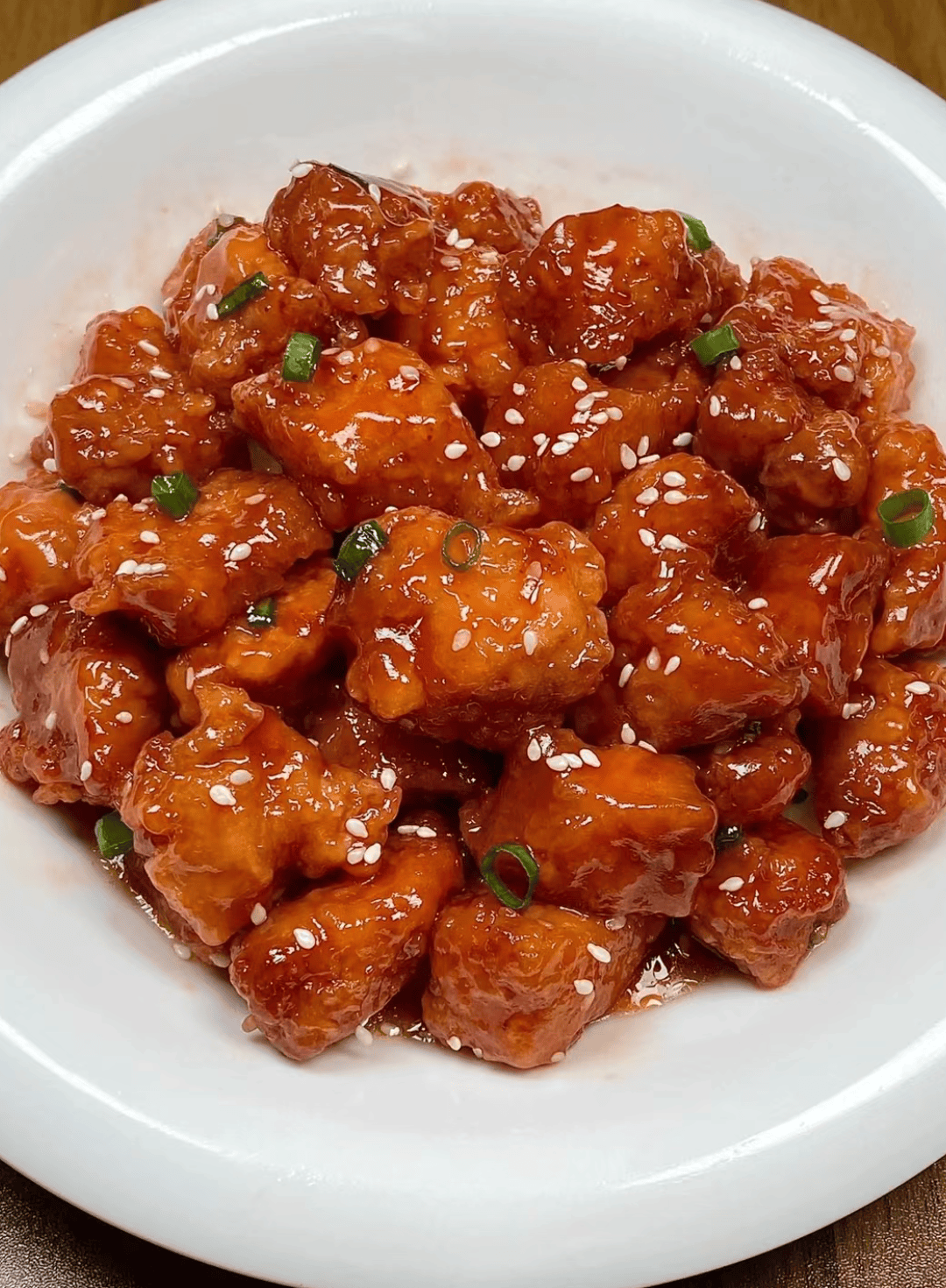 第六步,将炸好的肉块迅速倒入锅中,翻炒均匀,让每一块肉都裹满糖醋汁。最后,撒上一些熟白芝麻,翻炒几下即可出锅。
