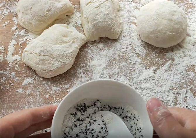 普通面粉、酵母粉、白糖、温水、黑芝麻、食用油