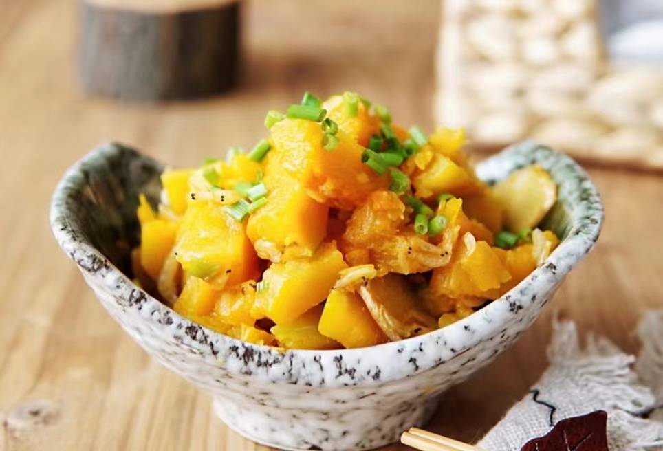 食材:小南瓜一个、虾皮一小把、葱一小段、姜三片、油十毫升、料酒五毫升、盐二克、香葱一根