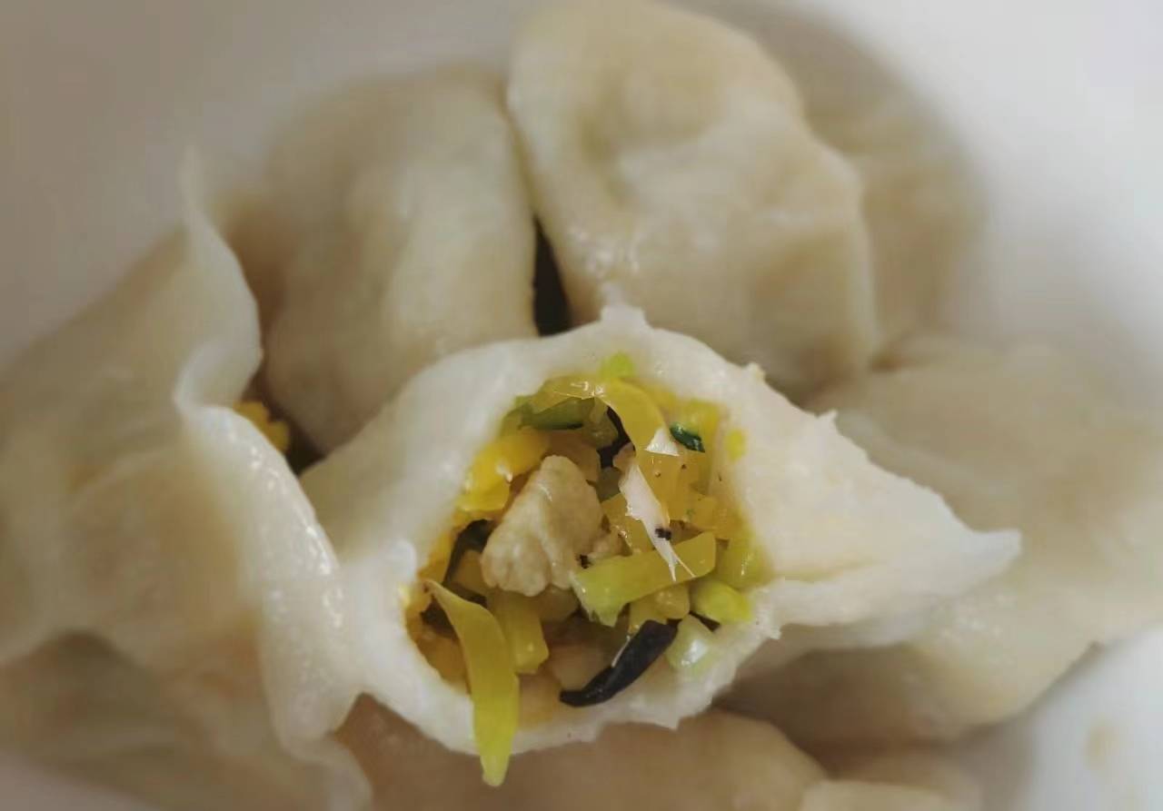 5、可以自己和面擀饺子皮,也可以直接去超市买现成的。拿一张饺子皮,放上适量的馅儿,然后包成你喜欢的形状。