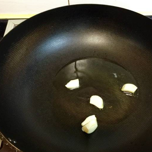 第4步、油烧热后放蒜瓣爆香。