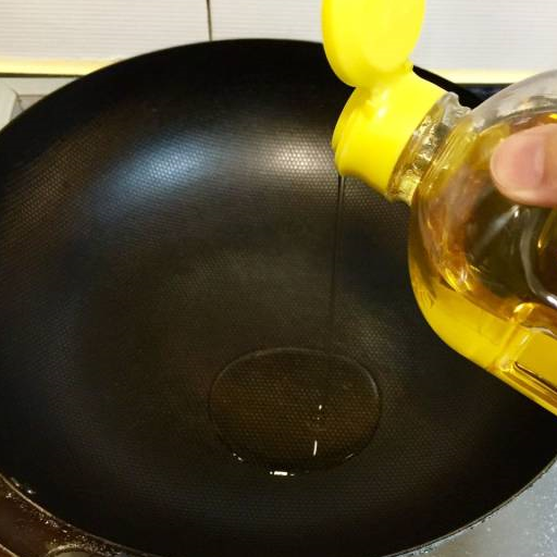 第3步、热锅下花生油。