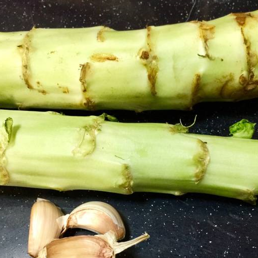 第1步、莴笋一条,蒜头三瓣,洗净。