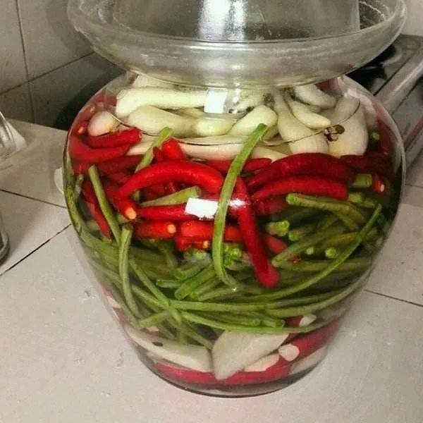 83、 膀豆角 新法:选择早晨采摘的新鲜脆嫩的豆角,直接加入适量的盐,在盛器内轻揉,待手感潮湿之后,再入缸(注意避免破损或虫蛀的豆角混入),层层压紧、压实,并撤上少量 盐,加净石压顶层,封口。此法是直接利用豆角本身汁水腌浸,不另加水,避免豆角在水中变腐。成品味正、色泽黄亮、口感松脆,可贮存1年以上。