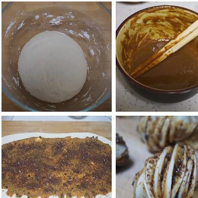 1、酵母融化在酒酿中,接着混合面粉,揉成光滑的面团。