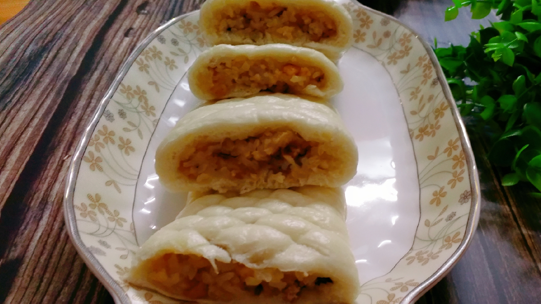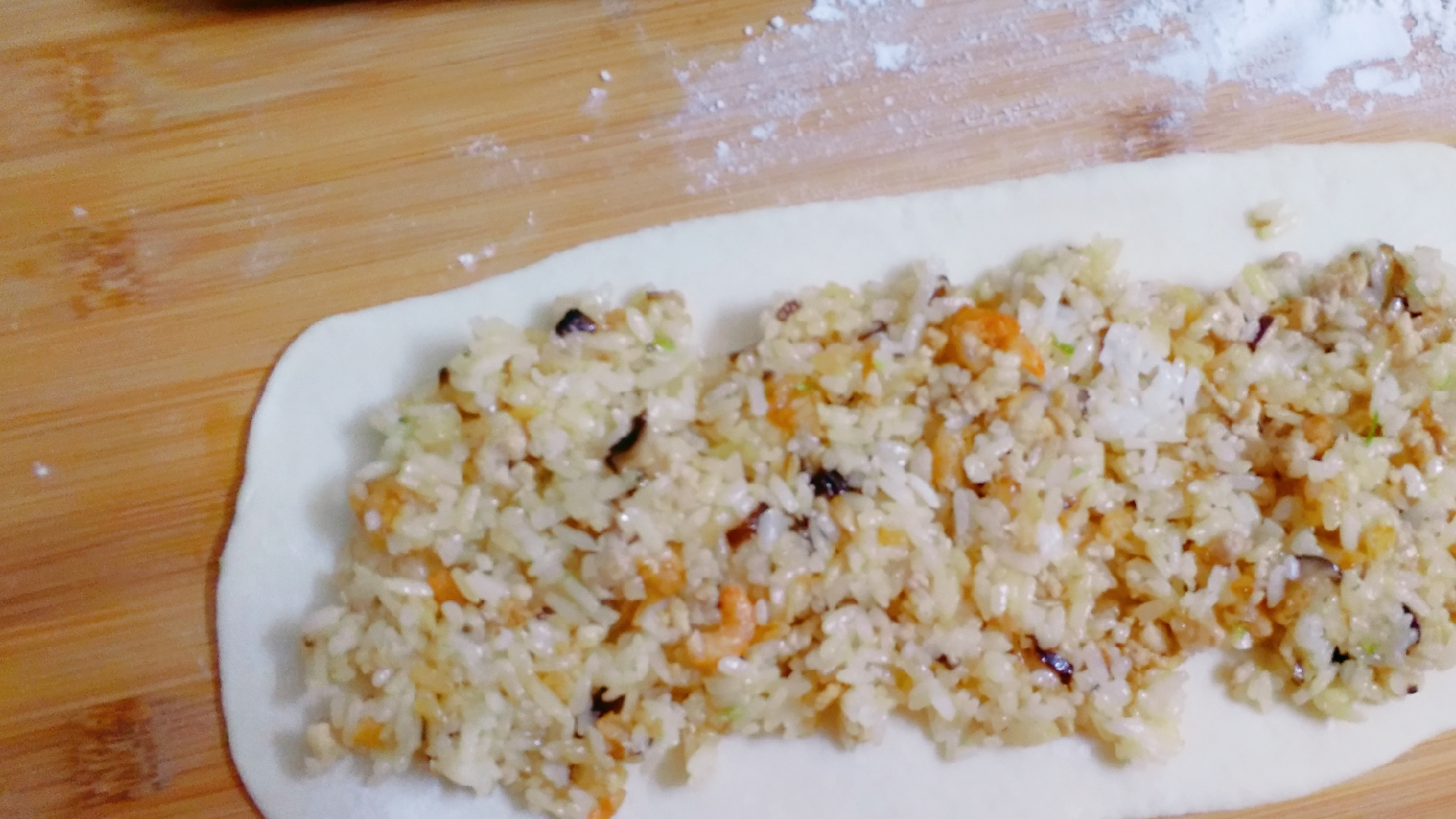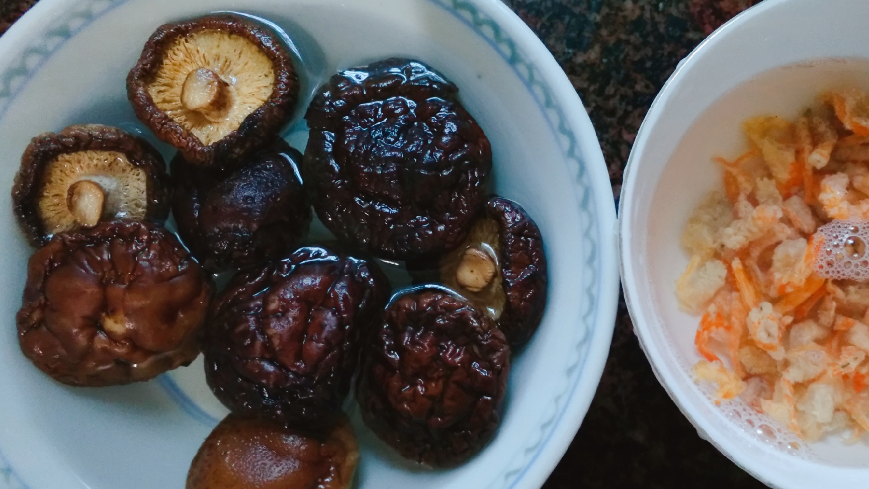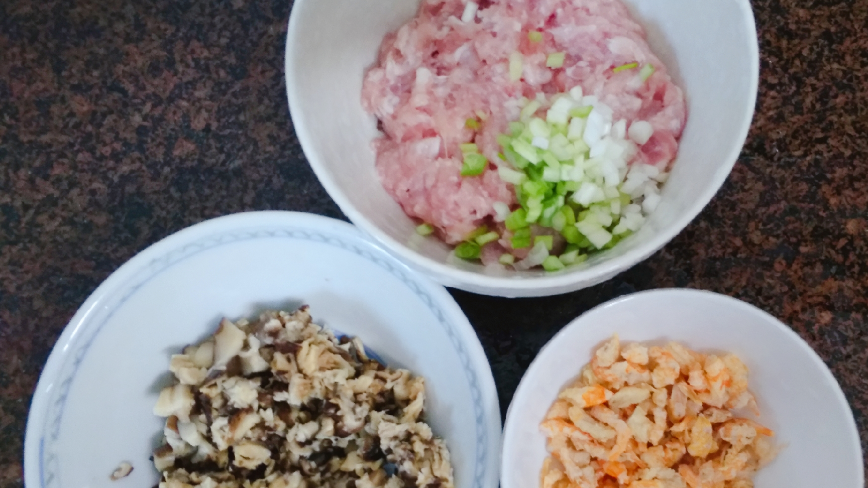 食材:面粉500克、糯米3杯(常用量米煮饭的杯子)、温水280毫升、酵母4克、白糖100克、适量香菇、虾米、葱白、猪瘦肉200克