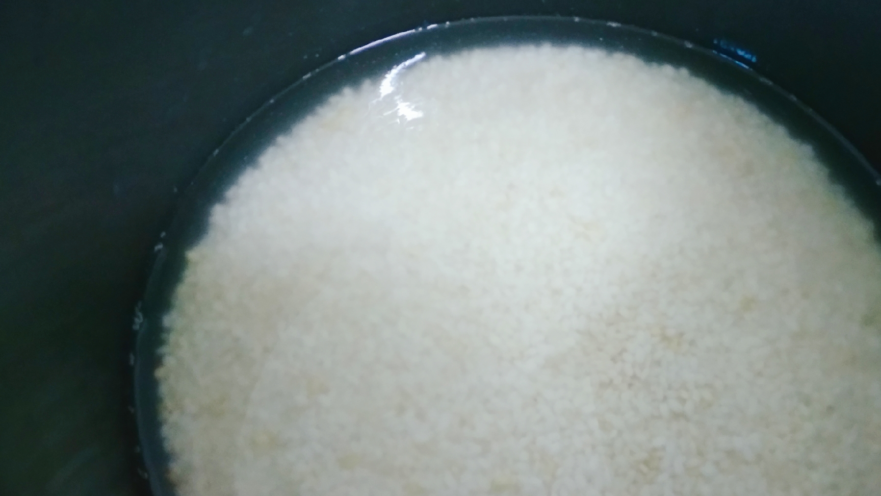第2步:把糯米洗干净,放到电饭锅里加没过糯米多半个指甲的水,按煮饭键煮就可以了。