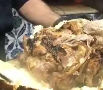 光从颜色上来看,这个面包味道一定会很好,这倒不事夸他,实在是很香。毕竟像面包这种东西只有刚出炉的时候才好吃,时间过了就没有那个味道了。不过面包和烤肉有啥关系,实际上是因为土耳其人讲烤肉放进了面包,一起烤制。所以很多看到的网友都表示:山寨版叫花鸡。
