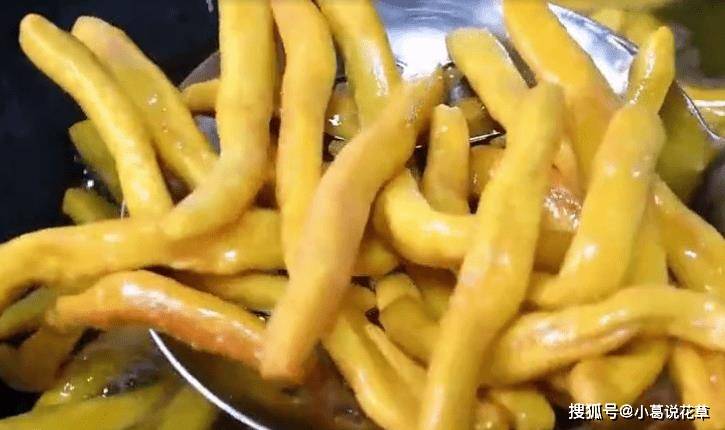 3、将和好的面团取出放在案板上擀成长条,然后用手压扁,用擀面杖擀薄,然后切成长条。不要把它剪得太宽。面团准备好了。松开并放在一边。 4.锅中倒入适量的油,中小火慢慢煎,煎的过程中要时不时搅拌一下,这样受热更均匀。炸至金黄酥脆,检查油,捞出。 5.锅中加入半杯水和半杯糖。用抹刀不断搅拌,直至表面充满气泡,并获得浓稠的糖稠度。关掉暖气。倒入炸卷,加入一把芝麻,快速炒匀,炸卷就做好了。不要油炸南瓜,用它来做卷。南瓜香气浓郁,咬下去脆脆的。就是小时候的味道。这样做出来的卷,咬起来又脆又脆。它们又甜又香。还是小时候的味道。它很好吃。想吃就自己在家做吧!自己准备的食物干净卫生,无任何添加剂,让您吃得放心,吃得开心。