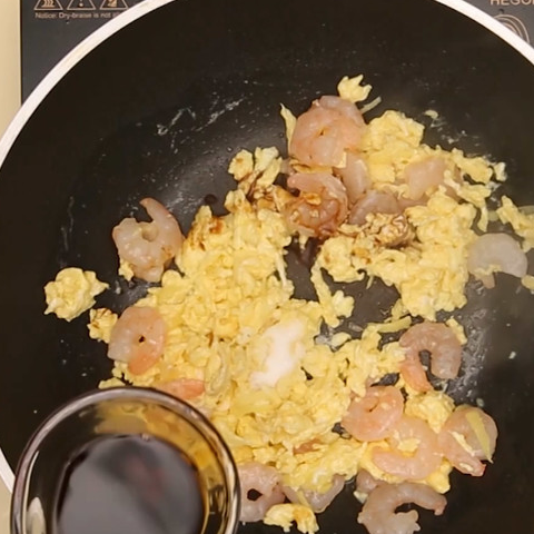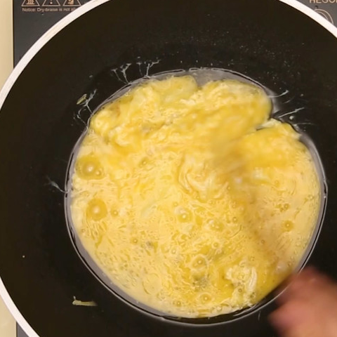 4.再在锅中倒入鸡蛋液,打散炒熟