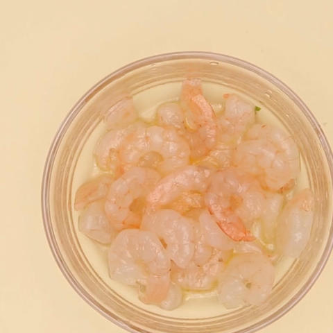 1.先在虾仁中依次放入橄榄油、盐,腌制十分钟备用