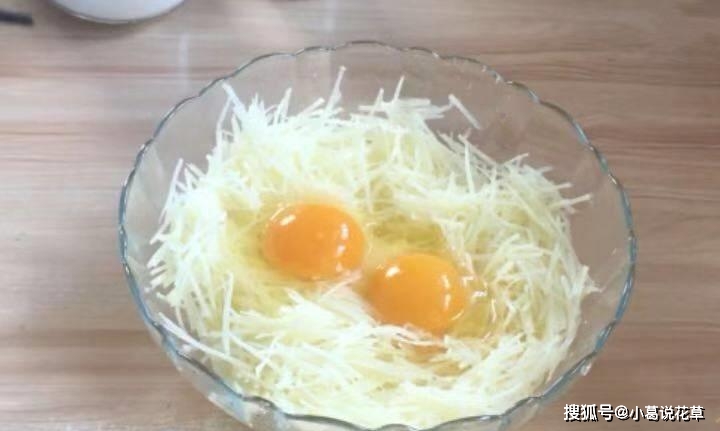 土豆加鸡蛋拌一拌,锅内煎一煎,好吃营养高,非常适合做早餐