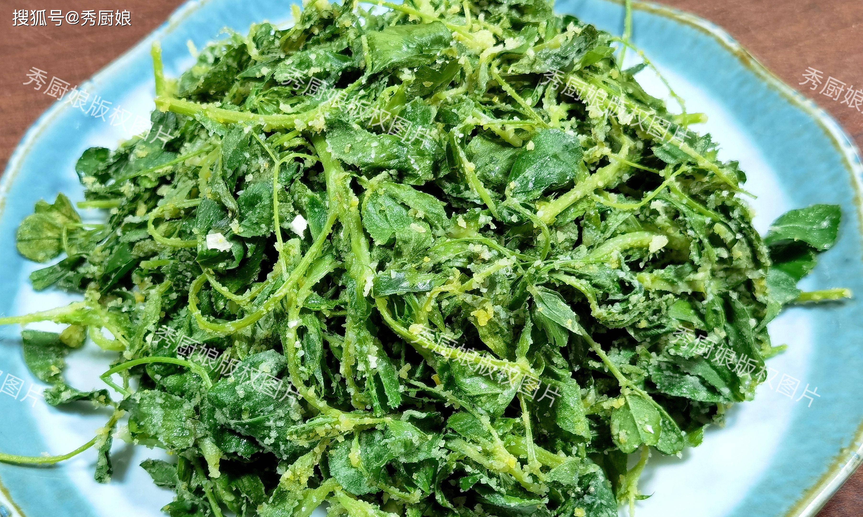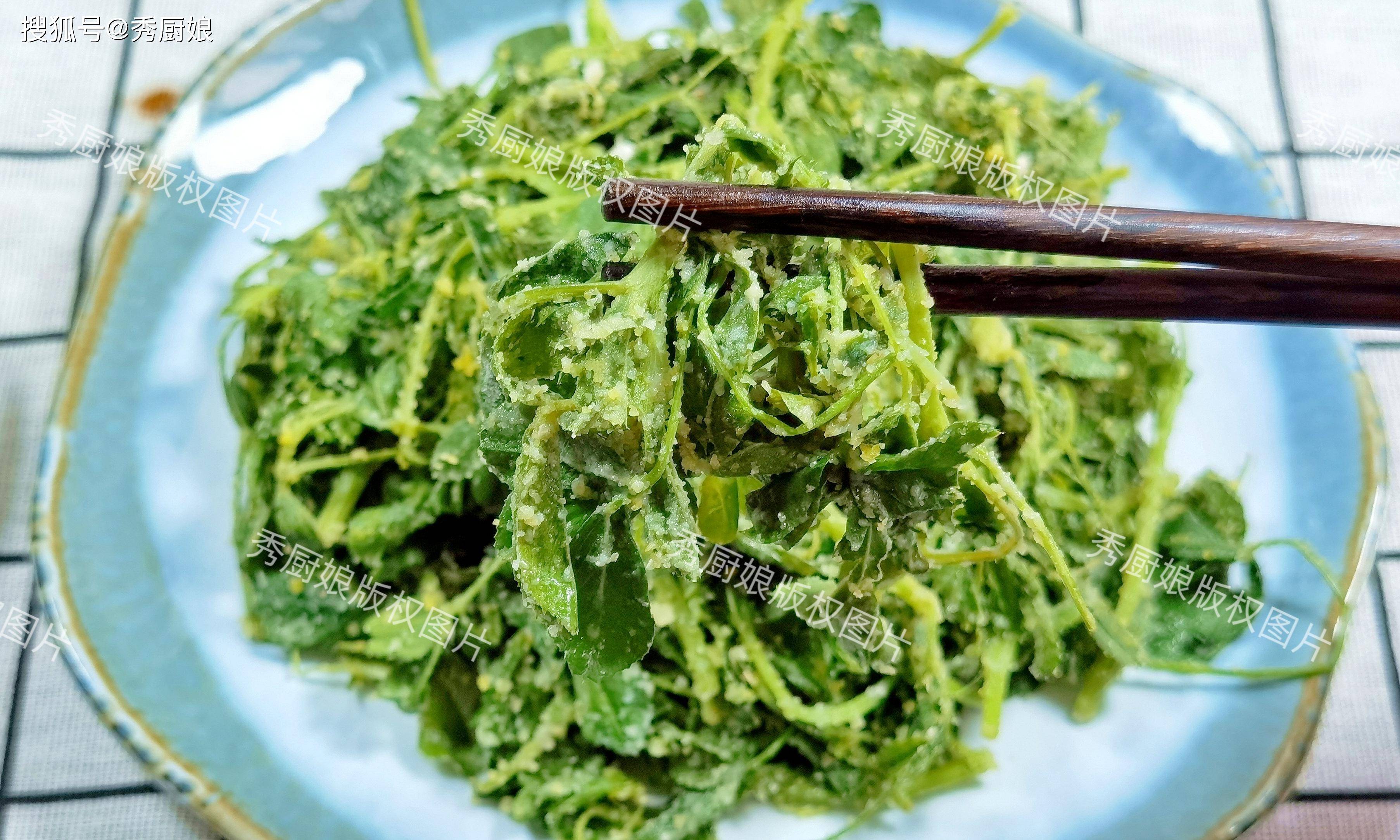 4. 出锅装盘:蒸好的苜蓿菜颜色翠绿,散发着清香。将其出锅装盘,可以搭配蒜泥、酱油或醋等调料食用,也可以直接食用原味,口感清新,带有一丝甘甜。