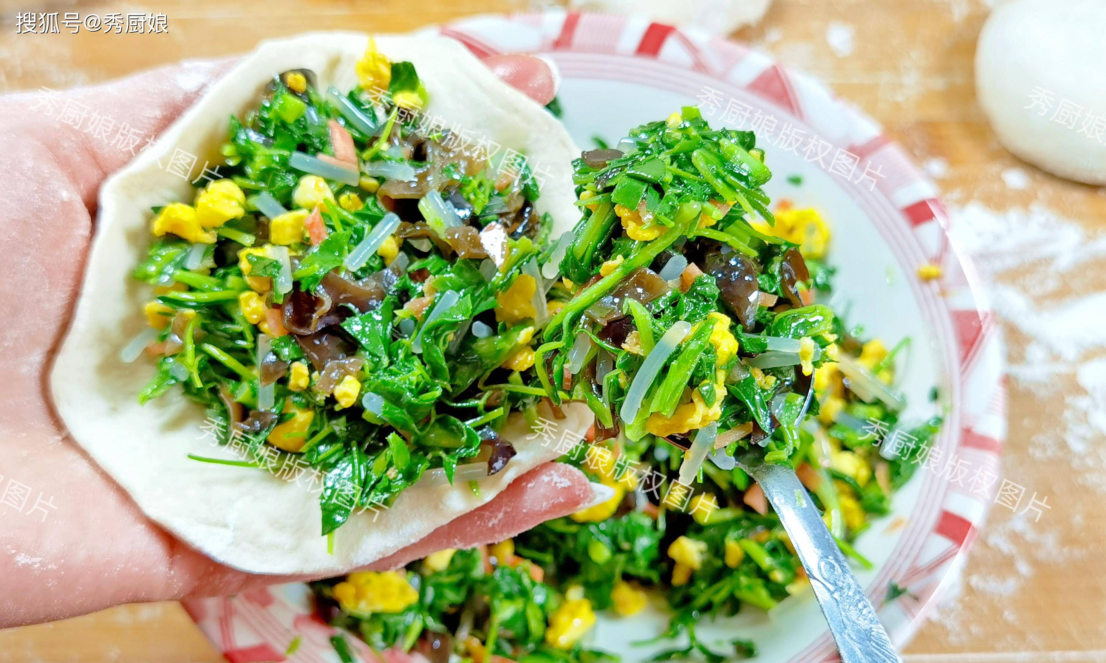 材料:新鲜苜蓿菜300克,鸡蛋3个,粉条50克,黑木耳10克,胡萝卜1根,面粉500克,酵母粉5克,食盐适量,生抽、香油适量,食用油适量,葱姜末适量。