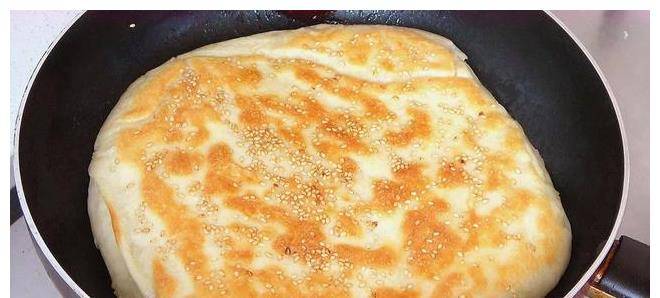 6、然后取发酵圆饼,锅中热油,油烧开后,加入发酵面团饼,然后两面煎三分钟左右,然后取出放在盘中。