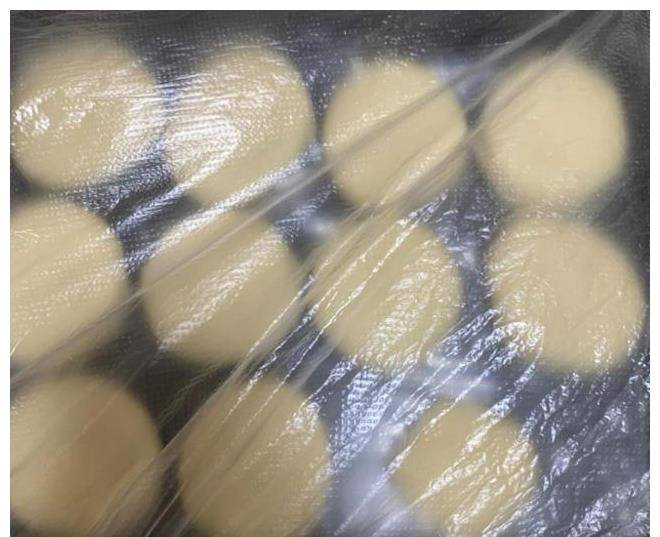 5.然后铺开并盖上一层保鲜膜。这一步很重要,圆饼要继续发酵。如果不进行这一步,煎出来的饼就会不好吃,又硬又生。煮半小时。
