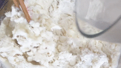 2.250g面粉用烧开的汤水烫熟,搅拌到没有干面粉就可以了,烫熟后晾凉。