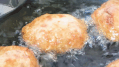 7.等小饼全部鼓起来了,再翻面,重要的事情说两遍,等小饼全部鼓起来了,再翻面,如果两面都炸硬了小饼就鼓不起来了。