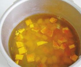 3把杂粮、南瓜放入高压锅内,加入足量水。