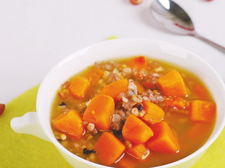 准备材料:杂粮(大米、小米、黄米、黑米、薏米、燕麦、高粱米、糯米、红米、大麦仁)150克,南瓜100克