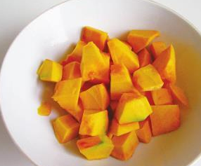 2南瓜去皮,切丁。