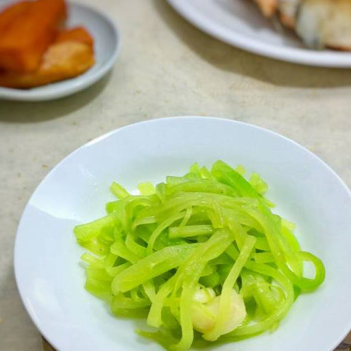 蒜炒莴笋丝 莴笋可是个好东西,可生食、凉拌、炒食、干制或腌渍。儿童多吃莴笋对生长发育很有益处,...