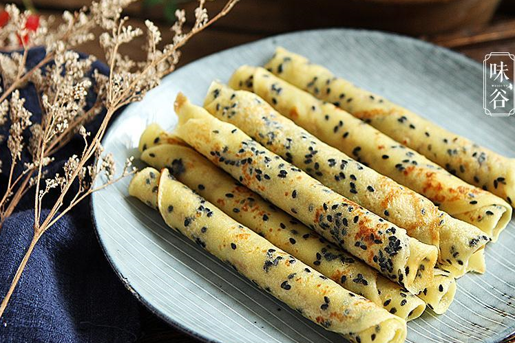 3. 将蔬菜卷饼煎至两面金黄酥脆,可以撒上一些芝麻增添香气。早餐时食用更佳。可以搭配牛奶或豆浆食用。
