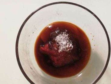 第三步,然后用筷子沾酱汁尝一下,如果味淡了,可以酌情添加一些食盐,然后用少许的凉白开分次少许的倒入,调稀成一碗“茄汁”,调好茄汁之后,即可进行后续的操作;